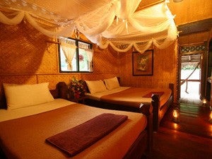 De drijvende bungalows zijn gebouwd op bamboe-vlotten en zijn omgeven door de schitterende jungle. Omdat er geen electriciteit is, wordt het gehele onderkomen 's avonds met olielampjes verlicht. Tevens beschikt elke kamer over een eigen olielamp.