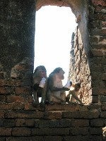 In de Ramayana is Lopburi de hoofdstad van het koninkrijk van de apen. De bomen rond het meest vereerde heiligdom van Lopburi, de tempel van Kala, zitten vol apen, die met z'n allen de bezoekers zitten uit te dagen. De makaken zijn tegenwoordig waarschijnlijk een van de belangrijkste toeristische attracties van Lopburi. Ze kunnen soms behoorlijk aggressief zijn en jatten voedsel uit winkels, tassen en als u niet goed uitkijkt direct uit uw hand. Zorg er daarom voor dat u losse voorwerpen goed opbergt. Elk jaar wordt er in november bij de Phra Prang Sam Yot tempel een apenbuffet georganiseerd waarbij honderden makaken zich tegoed doen aan groenten, vers fruit, gegrilde worstjes, ijs en melk ! De apen zijn zo goed voor de toeristensector dat een plaatselijke hoteleigenaar de apen hier jaarlijks mee bedankt.