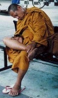 De vijf witte Khmer-prangs van deze veelvuldig gerestaureerde 14e-eeuwse tempel steken boven de stad uit. Engelen en goden sieren de daken van de wihan en de bot.